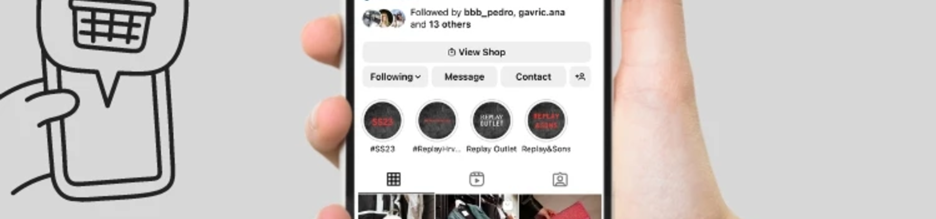 Do social prodavnica, osim kroz content koji se pratiocima prikazuje na početnoj stranici, moguće je pristupiti i putem profila brenda. Klikom na view shop otvara se Instagram prodavnica sa svim učitanim proizvodima, koje je moguće i filtrirati prema definisanim kategorijama. Klikom na pojedini proizvod prikazuje se galerija slika, opis proizvoda i cena, link na web prodavnicu kao i prečica za direktne poruke, putem kojih je direktno od prodavca moguće saznati više informacija.